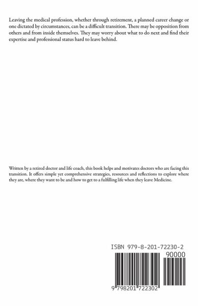 Leaving the medical profession, whether through retirement, a planned career change or one dictated by circumstances, can be a difficult transition. There may be opposition from others and from inside themselves. They may worry about what to do next and find their expertise and professional status hard to leave behind. Written by a retired doctor and now a life coach, this book helps and motivates doctors who are facing this transition. It offers simple yet comprehensive strategies, resources and reflections to explore where they are, where they want to be and how to get to a fulfilling life when they leave Medicine.