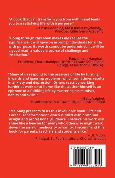 Looking for a practical guide to transform your life and career? Look no further than ""Life and Career Transformation"" by Lammuansang Tombing. With a Master's degree in Psychology and over 20 certifications related to career development and counselling, Tombing is a renowned author, edupreneur, and expert in psychology and career development. In this book, he shares invaluable insights on transforming your values, perception, and self-esteem to achieve a fulfilling career and life. You'll also learn effective habits, time management, and daily routines to boost productivity and achieve success. Whether you're a student, recent graduate, mid-career professional, or anyone looking to improve your life, ""Life and Career Transformation"" is a valuable guide to help you achieve success and fulfilment. With practical guidance on navigating career choices, finding your calling, and mastering high-income skills such as public speaking, writing, sales, and leadership, this book is packed with actionable advice to help you unlock your full potential. Order your copy today and start transforming your life and career!