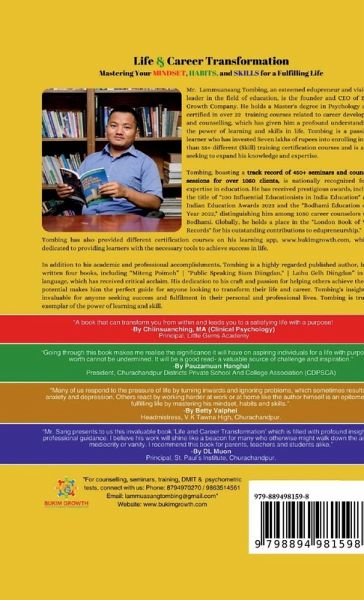 Looking for a practical guide to transform your life and career? Look no further than "Life and Career Transformation" by Lammuansang Tombing. With a Master's degree in Psychology and over 20 certifications related to career development and counselling, Tombing is a renowned author, edupreneur, and expert in psychology and career development. In this book, he shares invaluable insights on transforming your values, perception, and self-esteem to achieve a fulfilling career and life. You'll also learn effective habits, time management, and daily routines to boost productivity and achieve success. Whether you're a student, recent graduate, mid-career professional, or anyone looking to improve your life, "Life and Career Transformation" is a valuable guide to help you achieve success and fulfilment. With practical guidance on navigating career choices, finding your calling, and mastering high-income skills such as public speaking, writing, sales, and leadership, this book is packed with actionable advice to help you unlock your full potential. Order your copy today and start transforming your life and career!