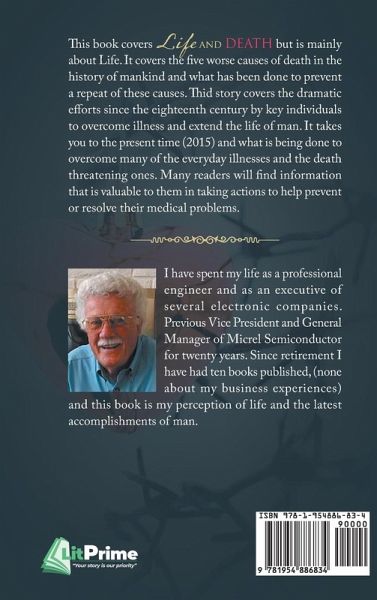 This book covers Life and Death but is mainly about Life. It covers the five worse causes of death in the history of mankind and what has been done to prevent a repeat of these causes. This story covers the dramatic efforts since the eighteenth century by key individuals to overcome illness and extend the life of man. It takes you to the present time (2015) and what is being done to overcome many of the everyday illnesses and the death threatening ones. Many readers will find information that is valuable to them in taking action to help prevent or resolve their medical problems.