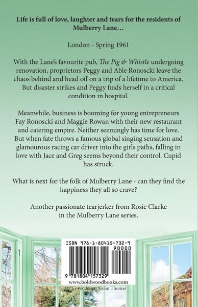Pre-order the BRAND NEW instalment in the bestselling Mulberry Lane series! With Mulberry Lane's favourite pub, The Pig & Whistle undergoing renovation, proprietors Peggy and Able Ronoscki leave the chaos behind and head off on a trip of a lifetime to America. But disaster hits and Peggy finds herself in a critical condition in hospital. Meanwhile, business is booming for young entrepreneurs Fay Ronoscki and Maggie Rowan with their new restaurant and catering empire. It seems neither has time for love. But when fate throws a famous global singing sensation and glamourous racing car driver into the girls paths, falling in love with Jace and Greg seems beyond their control. Cupid has struck. Life is made up of laughter, love and tears. What is next for the folk of Mulberry Lane - can they find the happiness they all so crave? Another passionate tearjerker from Rosie Clarke in the Mulberry Lane series.