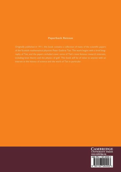 Originally published in 1911, this book contains a collection of many of the scientific papers of the Scottish mathematical physicist Peter Guthrie Tait. The work begins with a brief biography of Tait, and the papers included cover some of Tait's most famous research interests, including knot theory and the physics of golf. This book will be of value to anyone with an interest in the history of science and the work of Tait in particular.
