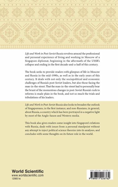 Life and Work in Post-Soviet Russia revolves around the professional and personal experience of living and working in Moscow of a Singapore diplomat, beginning in the aftermath of the USSR's collapse and ending in the first decade-and-a-half of this century. The book seeks to provide readers with glimpses of life in Moscow and Russia in the mid-1990s, as well as in the early years of this century. It deals with not only the sociopolitical and economic challenges of Russia's post-Soviet leaders, but also those facing the man-in-the-street. That the man-in-the-street had to personally bear the brunt of the momentous changes in post-Soviet Russia's rush to reforms is made plain in the book, and not so much the trials and tribulations of his leaders. Life and Work in Post-Soviet Russia also looks to broaden the outlook of Singaporeans, in the first instance, and non-Russians, in general, about Russia, a country which has been portrayed in a negative light by most of the Anglo-Saxon and Western media. This book also gives readers some insight into Singapore's relations with Russia, deals with issues from a personal standpoint without any attempt to inject political science theories into its analyses, and concludes with some thoughts on its future role in the world.