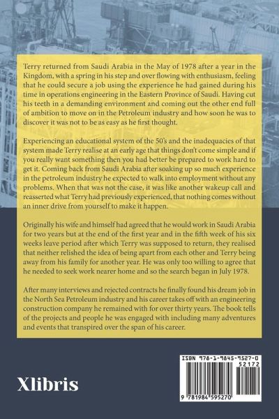 Terry returned from Saudi Arabia in the May of 1978 after a year in the Kingdom, with a spring in his step and over flowing with enthusiasm, feeling that he could secure a job using the experience he had gained during his time in operations engineering in the Eastern Province of Saudi. Having cut his teeth in a demanding environment and coming out the other end full of ambition to move on in the Petroleum industry and how soon he was to discover it was not to be as easy as he first thought. Experiencing an educational system of the 50's and the inadequacies of that system made Terry realise at an early age that things don't come simple and if you really want something then you had better be prepared to work hard to get it. Coming back from Saudi Arabia after soaking up so much experience in the petroleum industry he expected to walk into employment without any problems. When that was not the case, it was like another wakeup call and reasserted what Terry had previously experienced, that nothing comes without an inner drive from yourself to make it happen. Originally his wife and himself had agreed that he would work in Saudi Arabia for two years but at the end of the first year and in the fifth week of his six weeks leave period after which Terry was supposed to return, they realised that neither relished the idea of being apart from each other and Terry being away from his family for another year. He was only too willing to agree that he needed to seek work nearer home and so the search began in July 1978. After many interviews and rejected contracts he finally found his dream job in the North Sea Petroleum industry and his career takes off with an engineering construction company he remained with for over thirty years. The book tells of the projects and people he was engaged with including many adventures and events that transpired over the span of his career.