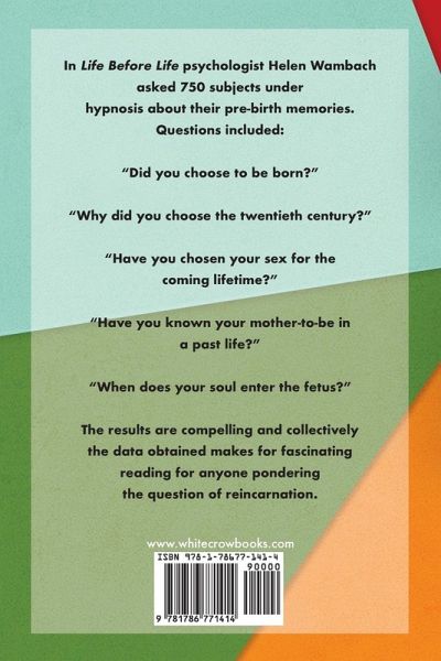 In Life Before Life psychologist Helen Wambach asked 750 subjects under hypnosis about their pre-birth memories. Questions included: "Did you choose to be born?" "Why did you choose the twentieth century?" "Have you chosen your sex for the coming lifetime?" "Have you known your mother-to-be in a past life?" "When does your soul enter the fetus?" The results are compelling and collectively the data obtained makes for fascinating reading for anyone pondering the question of reincarnation.