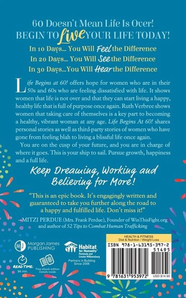 Ruth Verbree is a speaker and international award-winning author of My Life With A Cop: How To Survive The Ride and Renew Your Mind: Maximize Your Potential. She is also the author of the children¿s book, The Land Beyond The Yellow Spout. She has been featured on radio and television in her hometown and has spoken on multiple stages, including sharing the stage with world renowned speakers Les Brown, Bob Proctor, and Jack Canfield. Ruth¿s passion now is to give hope to women in their 50s and 60s that it is possible to live a happy healthy life and become the best version of themselves. Life Begins At 60! shows women that it is possible to live a happy healthy life and promotes Ruth¿s online program ¿The 10-Day Weigh Down¿. She currently resides in Kamloops, British Columbia.