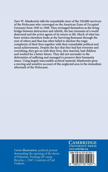 This is the remarkable story of the 250,000 Holocaust survivors who converged on the American Zone of Occupied Germany from 1945 to 1948. They envisaged themselves as the living bridge between destruction and rebirth, the last remnants of a world destroyed and the active agents of its return to life. Much of what has been written to date looks at the Surviving Remnant through the eyes of others and thus has often failed to disclose the tragic complexity of their lives together with their remarkablepolitical and social achievements. Despite having lost everyone and everything, they got on with their lives, they married, had children and worked for a better future. They did not surrender to the deformities of suffering and managed to preserve their humanity intact. Mankowitz uses largely inaccessible archival material to give a moving and sensitive account of this neglected area in the aftermath of the Holocaust. Contents Introduction; 1. The occupation of Germany and th