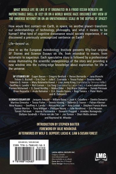 How would first contact--on earth, in space, on another planet--transform our understandings of technology, philosophy, and what it means to be human? What kind of cognitive dissonance would society experience, if we discovered a previously unrecognized sentience on Earth? What would life be like if it originated in a frigid ocean beneath an impenetrable shell of ice? Or on a world whose haze obscures any view of the universe beyond? Or on an unfathomable scale in the depths of space? Or . . . Life--beyond us. Dive in as the European Astrobiology Institute presents fifty-four original SF Stories and Science Essays on life, from microbial to macro, from automatic to sagacious. Each speculative story is followed by a professional essay illuminating the scientific underpinnings of the story and providing a new window into the cutting-edge knowledge about exploration for life in the universe. SF STORIES BY: Eugen Bacon, Gregory Benford, Renan Bernardo, Jana Bianchi, Tobias S. Buckell, Eric Choi, Julie E. Czerneda, Tessa Fisher, Simone Heller, Valentin D. Ivanov, Mary Robinette Kowal, Lisa Jenny Krieg (translated by Simone Heller), Geoffrey A. Landis, Rich Larson, Liu Yang (translated by Ladon Gao), Lucie Lukäovi¿ová, Premee Mohamed, G. David Nordley, Malka Older, Deji Bryce Olukotun, Tomá Petrásek, Brian Rappatta, Arula Ratnakar, D.A. Xiaolin Spires, Bogi Takács, Peter Watts, and B. Zelkovich. SCIENCE ESSAYS BY: Jacques Arnould, William Bains, José A. Caballero, Dimitra Demertzi, Martina Dimoska, Tessa Fisher, Dennis Höning, Valentin D. Ivanov, Fabian Klenner, Nina Kopacz, Geoffrey A. Landis, Natuschka Lee, Ania Losiak, Stephen Francis Mann, Connor Martini, Tony Milligan, Philippe Nauny, Julie Nováková, Erik Persson, Tomá Petrásek, Joanna Piotrowska, Giovanni Poggiali, Amedeo Romagnolo, Stefano Sandrelli, Floris van der Tak, Jan Toman, Sheri Wells-Jensen, and Raymond M. Wheeler INTRODUCTION BY: Stephen Baxter FOREWORD BY: Julie Nováková AFTERWORDS BY: Wolf D. Geppert; Lucas K. Law & Susan Forest EDITED BY: Julie Nováková, Lucas K. Law & Susan Forest Previous anthologies by Laksa Media (Strangers Among Us, The Sum of Us, Where the Stars Rise, Shades Within Us, Seasons Between Us) have been recommended by Publishers Weekly, Booklist (American Library Association), Kirkus Reviews, Library Journal, School Library Journal, Locus, Foreword Reviews, and Quill & Quire.