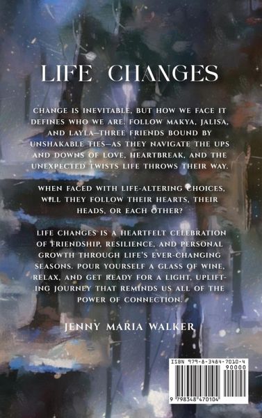 Embracing Life's Ups and Downs with Heart and Humor "Life Changes" by Jenny Maria Walker is a poignant and uplifting novel that celebrates the unbreakable bonds of friendship and the power of resilience. Join Makya, Jalisa, and Layla as they navigate love, heartbreak, and life's unexpected twists. With relatable characters, heartfelt moments, and a dash of humor, this book is a must-read for anyone looking for a light, inspiring story. Pour yourself a glass of wine, get cozy, and indulge in this beautiful celebration of friendship and personal growth. Buy now and discover the joy of embracing life's changes!