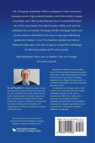 Life-Changing Leadership Habits is designed to help executives, business owners, high potential leaders, and others build a career, a business, and a life as they discover how to successfully break ten of the worst habits that derail leaders. While work and the workplace are continually changing, the life-changing habits and proven solutions identified in this easy-to-use, groundbreaking guide are timeless. In real-life situations, leaders can rely on these principles year-over-year to gain a competitive advantage by elevating people, profit, and purpose. Bad leadership habits are not destiny. They can change: this book is proof!