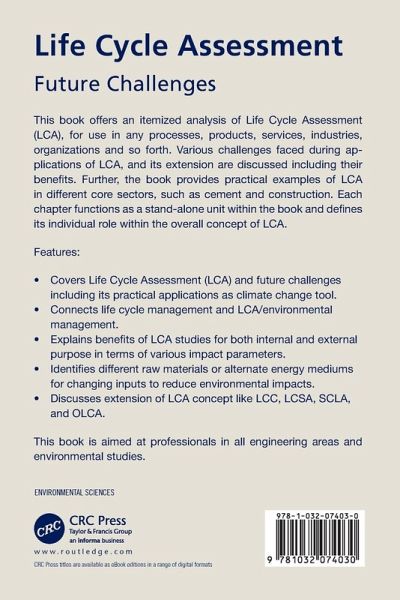 This book offers an itemized analysis of Life Cycle Assessment (LCA), for the use in any processes, products, services, industries, organizations and so forth. Various challenges faced during applications of LCA and its extension are discussed including their benefits and challenges are included alongwith practice examples.