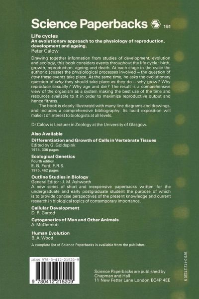 As time progresses, biology becomes more and more fragmented and specialized and it becomes increasingly difficult to see how all the dis- ! parate facts fit together. It is completely proper that biologists should have sought to reduce complex biological wholes into their parts, and it is natural that studies on the products of this reduction should have diverged from more holistic studies on evolution and ecology. Yet the biological parts, what they do and how they are organized are products of an evolutionary process which fits organisms for life in particular ecological circumstances. Physiology, developmental biology, ecology and evolutionary biology must not be allowed to grow too far apart, therefore, because all these disciplines and the way their subject matters interact are crucial to understanding organisms - and it is this, it seems to me, which is the fundamental goal of the biological sciences. This book has been written in the spirit of unification and synthesis. It is, in a sense, a general biology of the organism - not, however, of organisms as static unchanging systems, but of organisms as dynamic entities which progress through a definite cycle of events from birth to maturity. The central theme, therefore, will be the life cycle, and the book is organized around the three main phases which are characteristic of all life cycles; growth (Part II), reproduction (Part III) and ageing (Part IV).