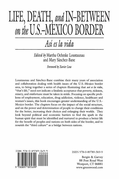 Loustaunau and Sánchez-Bane combine their many years of association and collaboration dealing with health issues in the U.S.-Mexico border area, to bring together a series of chapters illustrating that así es la vida, that's life, need not indicate a fatalistic acceptance that poverty, sickness, misery, and misfortune must be taken in stride. The authors of the chapters have researched, studied, worked with, or have been borderlanders themselves. The chapters focus on the impact of the social structure, and on the power and determination of people to change their conditions for the better, increasing their choices and enlarging their worlds. They look beyond political and economic barriers to find the spark in the human spirit that must be identified and nurtured to produce a better life for the benefit of peoples and nations on both sides of the border, and to nourish the third culture as a bridge between nations. The authors note the dangers and pitfalls along the way, and the need for more realistic policies and programs to empower people to define their own problems, and to participate in fashioning the solutions.