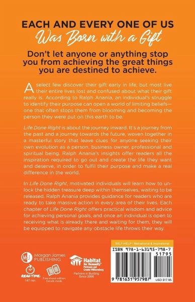 Life Done Right equips readers with the inspiration required to go out and create the life they want, in order to fulfil their purpose and make a real difference in the world.
