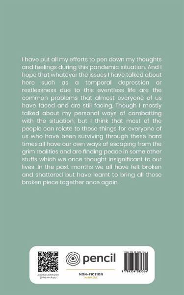 I have put all my efforts to pen down my thoughts and feelings during this pandemic situation. And I hope that whatever the issues I have talked about here such as a temporal depression or restlessness due to this eventless life are the common problems that almost everyone of us have faced and are still facing. Though I mostly talked about my personal ways of combatting with the situation, but I think that most of the people can relate to these things for everyone of us who have been surviving through these hard times,all have our own ways of escaping from the grim realities and are finding peace in some other stuffs which we once thought insignificant to our lives .In the past months we all have felt broken and shattered but have learnt to bring all those broken piece together once again.