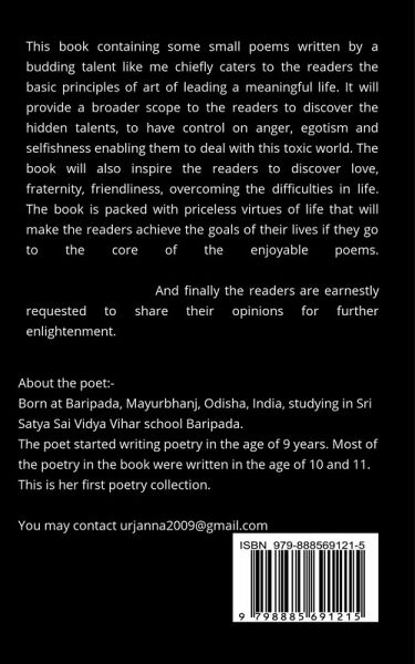This book containing some small poems written by a budding talent like me chiefly caters to the readers the basic principles of art of leading a meaningful life. It will provide a broader scope to the readers to discover the hidden talents, to have control on anger, egotism and selfishness enabling them to deal with this toxic world. The book will also inspire the readers to discover love, fraternity, friendliness, overcoming the difficulties in life. The book is packed with priceless virtues of life that will make the readers achieve the goals of their lives if they go to the core of the enjoyable poems