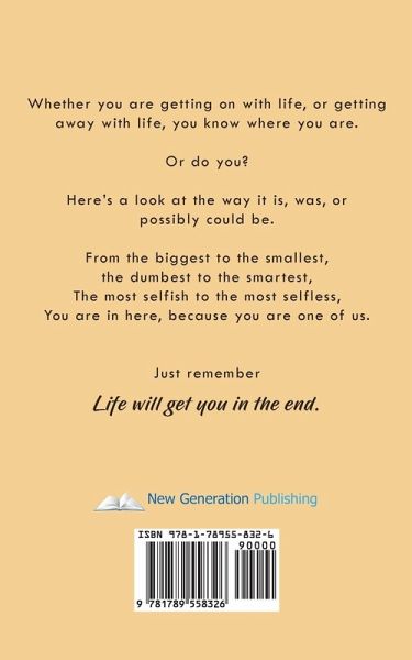 Whether you are getting on with life, or getting away with life, you know where you are. Or do you? Here's a look at the way it is, was, or possibly could be. From the biggest to the smallest, the dumbest to the smartest, The most selfish to the most selfless, You are in here, because you are one of us. Just remember Life will get you in the end.