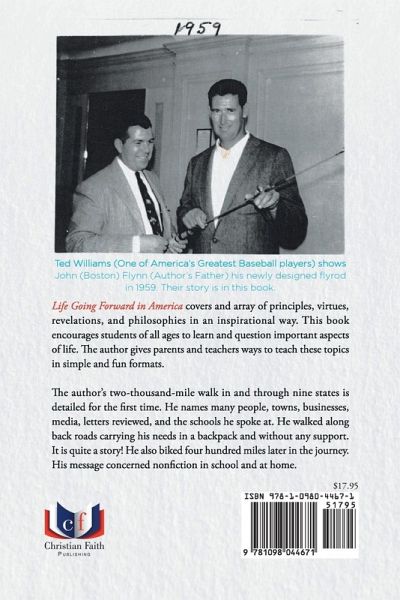 Life Going Forward in America covers and array of principles, virtues, revelations, and philosophies in an inspirational way. This book encourages students of all ages to learn and question important aspects of life. The author gives parents and teachers ways to teach these topics in simple and fun formats. The author's two-thousand-mile walk in and through nine states is detailed for the first time. He names many people, towns, businesses, media, letters reviewed, and the schools he spoke at. He walked along back roads carrying his needs in a backpack and without any support. It is quite a story! He also biked four hundred miles later in the journey. His message concerned nonfiction in school and at home.