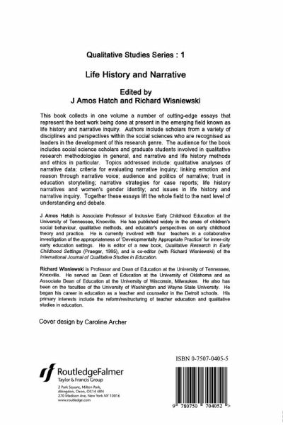 Narrative inquiry refers to a subset of qualitative research design in which stories are used to describe human action. This book contains current ideas in this emerging field of research. Chapters include a qualitative analysis of narrative data; criteria for evaluating narrative inquiry, linking emotion and reason through narrative voice, audience and the politics of narrative; trust in educational storytelling; narrative strategies for case reports; life history narratives and women's gender identity; and issues in life history and narrative inquiry. This text is intended to be of interest to all qualitative researchers and education researchers studying forms of narrative.