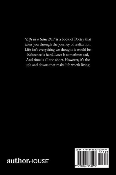 "Life in a Glass Box" is a book of Poetry that takes you through the journey of realization. Life isn't everything we thought it would be. Existence is hard, Love is sometimes sad, And time is all too short. However, it's the up's and downs that make life worth living.