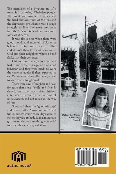 The memories of a by-gone era of a town full of loving Christian people. The good and wonderful times and the hard and sad times of the 40's and the depression era when it was a tough struggle to line. The story continues into the 50's and 60's when times were somewhat better. It was also a time when there were good morals and most all of America believed in god and trusted in Him, and showed their love and devotion to God and their neighbors where a hand shake was their contract. Children were taught to mind and had to suffer the consequences of a bad behavior, and they were made to work the same as adults if they expected to eat. We were not abused but taught how to survive in a tough world. There were days of laughter and days for tears that close family and friends shared, and the ways that children entertained themselves in the days of no television, and not much in the way of toys. Some call them the "good ole days" and others call it "down and out" hard times, but whatever those days were to others they are embedded in a mountain girls memories as something wonderful to remember, cherish, and share.