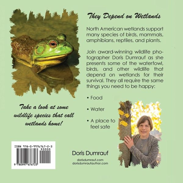 ***First Place Best Photography 2021 Purple Dragonfly Book AwardsFollowing up on her award-winning book Common Backyard Birds, nature photographer Doris Dumrauf points her camera at wildlife frequently found in North American wetlands: herons, egrets, ducks, frogs, dragonflies, alligators, and other amazing creatures. They all need food, water, shelter, and a place to raise the next generation. Forty-two full-color images vividly depict the animals in their natural habitat. Told from the point of view of the wildlife, the educational and entertaining text gives the young reader insight into their personalities.