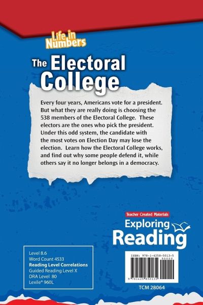 The Electoral College is a complex system influenced by various factors in the United States' rich history. Some of the ideas behind the Electoral College--such as ensuring that smaller states were given a vote--still apply today. However, the Electoral College has changed over the years in ways that the framers of the Constitution did not anticipate. Learn everything you ever wanted to know about the Electoral College with this full-color informational text that explores contemporary issues through high-interest content! Packed with fun facts, fascinating sidebars, and featuring TIME© content and images, this nonfiction book has text features such as a glossary, an index, and a table of contents to engage students in reading as they build their comprehension, vocabulary, and reading skills. The Reader's Guide and extended Try It! activity increase understanding of the material, and develop higher-order thinking. Check It Out! offers print and online resources for additional reading. Keep students reading from cover to cover with this captivating text!
