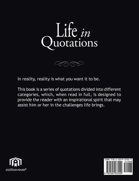 In reality, reality is what you want it to be. This book is a series of quotations divided into different categories, which, when read in full, is designed to provide the reader with an inspirational spirit that may assist him or her in the challenges life brings.