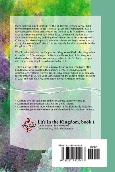 Have you ever asked yourself, "Is this all there is to being saved? Isn't there something more to this?" Most of us are only being taught half a salvation. Jesus' views on salvation are quite at odds with the way many of us experience it in our day-to day-lives. Life in the Kingdom is a devotional commentary on living the Christian life as Jesus anticipated it. Covering Matthew chapters 1-14 in this volume, we begin to see how the many elements of the Christian life are actually building materials for the Kingdom of God. We Christians seldom use the phrase, "Kingdom of God," choosing rather to use "saved." But seeing our salvation in the context of the Kingdom clarifies why we do what we do, our position in God's plan of the ages, and imparts meaning to us who surrender to it.