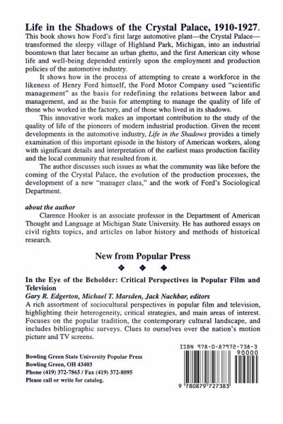 This book shows how Ford's first large automotive plant - the Crystal Palace - transformed the sleepy village of Highland Park, Michigan, into an industrial boomtown that later became an urban ghetto, and the first American city whose life and well-being depended entirely upon the employment and production policies of the automotive industry. It shows how in the process of attempting to create a workforce in the likeness of Henry Ford himself, the Ford Motor Company used "scientific management" as the basis for redefining the relations between labor and management, and as the basis for attempting to manage the quality of life of those who worked in the factory, and of those who lived in its shadows. This innovative work makes an important contribution to the study of the quality of life of the pioneers of modern industrial production. Given the recent developments in the automotive industry, Life in the Shadows provides a timely examination of this important episode in the history of American workers, along with significant details and interpretation of the earliest mass production facility and the local community that resulted from it. The author discusses such issues as what the community was like before the coming of the Crystal Palace, the evolution of the production processes, the development of a new "manager class", and the work of Ford's Sociological Department.