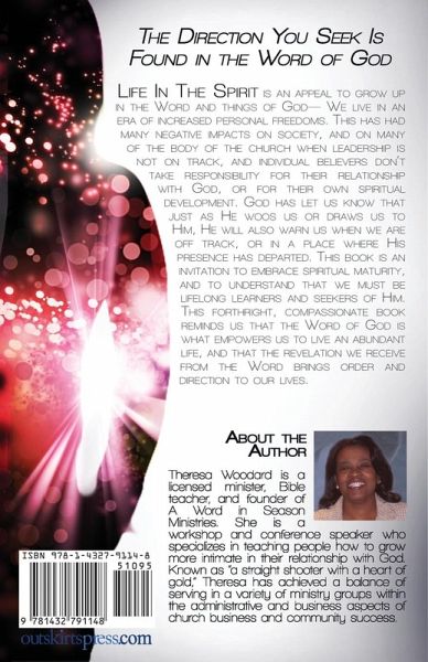 The Direction You Seek Is Found in the Word of God ... Life in the Spirit is an appeal to grow up in the Word and things of God- We live in an era of increased personal freedoms. This has had many negative impacts on society, and on the body of the church when leadership has gotten off-track, and individual believers no longer take responsibility for their relationship with God, or for their own spiritual development. God has let us know that just as He woos us or draws us to Him, He will also warn us when we are off track, or in a place where His presence has departed. This book is an invitation to embrace spiritual maturity, and to understand that we must be lifelong learners and seekers of Him. This forthright, compassionate book reminds us that the Word of God is what empowers us to live an abundant life, and that the revelation we receive from the Word brings order and direction to our lives.