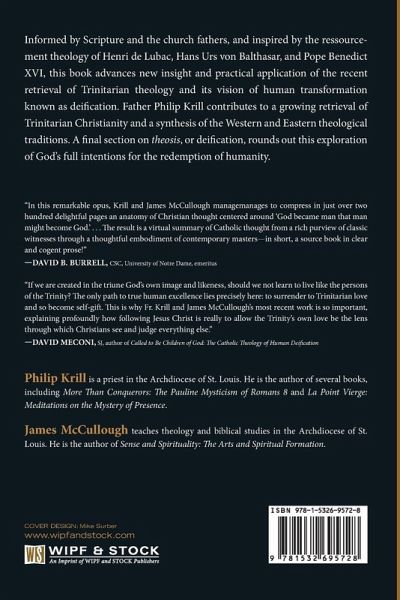 Informed by Scripture and the church fathers, and inspired by the ressourcement theology of Henri de Lubac, Hans Urs von Balthasar, and Pope Benedict XVI, this book advances new insight and practical application of the recent retrieval of Trinitarian theology and its vision of human transformation known as deification. Father Philip Krill contributes to a growing retrieval of Trinitarian Christianity and a synthesis of the Western and Eastern theological traditions. A final section on theosis, or deification, rounds out this exploration of God's full intentions for the redemption of humanity.