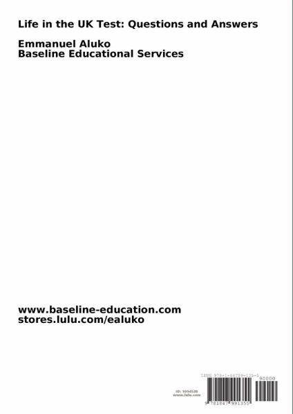This Questions and Answers book (8.26" x 11.69") is based on the Home Office official second edition book "LIFE IN THE UNITED KINGDOM - A Journey to Citizenship" is a perfect book to test your readiness for the citizenship/permanent residence test, for tests from April 2007. The answers are cross-referenced to paragraphs in the official book, and the 380 questions are extensive enough to prepare you for the 24 questions required on the real tests. Questions have been built around what you need to know and important aspects of living in Britain. For PDF download, please visit www.energiz.co.uk.