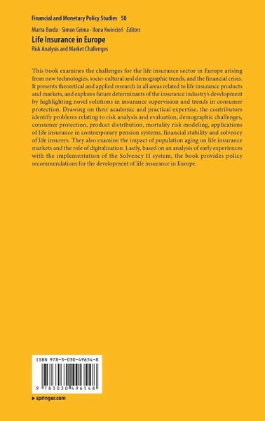 This book examines the challenges for the life insurance sector in Europe arising from new technologies, socio-cultural and demographic trends, and the financial crisis. It presents theoretical and applied research in all areas related to life insurance products and markets, and explores future determinants of the insurance industry's development by highlighting novel solutions in insurance supervision and trends in consumer protection. Drawing on their academic and practical expertise, the contributors identify problems relating to risk analysis and evaluation, demographic challenges, consumer protection, product distribution, mortality risk modeling, applications of life insurance in contemporary pension systems, financial stability and solvency of life insurers. They also examine the impact of population aging on life insurance markets and the role of digitalization. Lastly, based on an analysis of early experiences with the implementation of the Solvency II system,the book provides policy recommendations for the development of life insurance in Europe.