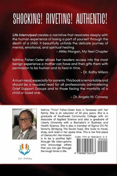 Life Interrupted creates a narrative that resonates deeply with the human experience of losing a part of yourself through the death of a child. It beautifully unfolds the delicate mental, emotional, and spiritual healing journey. I penned the words to this life-transforming book to share my journey of the hills, the valleys, and the interruptions that can take your breath away leaving you almost lifeless. My learnings at the time of this writing are profound. I learned no matter the depth of despair and the height of obscurity and confusion, you can be found by God who can keep you from self-destruction.