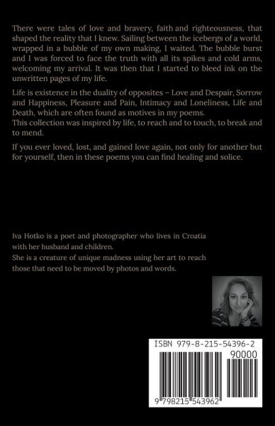 This collection of 81 poems on 132 pages shares, with all honesty and fierceness, the sense and sensibility of an author on the theme of Life as a remembrance of love, lose and pain, longing and regret, hope and faith in a place where demons are putting angels to rest. Here worded sensation and thought aren't shared as an finished product but as a living entity that takes form in the readers heart and mind. As any art, these poems will resonate with you, or they won't. They may or may not touch you, making you retrace your steps in time, and having different eyes for the abundancy of life. If you ever loved, lost, and gained love again, this collection of poems is for you.