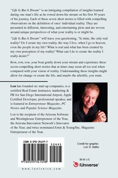 "Life Is But A Dream" is an intriguing compilation of insights learned during one man's life as he rowed down his stream on his first 50 years of his journey. Each of these seven short stories is filled with compelling observations on the definition of ones' individual reality. They are present in different, interesting, and entertaining plots and are woven around unique perspectives of what your reality is or might be. "Life Is But A Dream" will leave you questioning, "Is mine, the only real reality? Do I create my own reality, the way I live, when I go to heaven, even the people in my life? What is real and what has been created by my own perception of my reality? What can I do to create the reality I really desire?" Row, row, row, your boat gently down your stream and experience these seven compelling short stories that at times may seem all too real when compared with your vision of reality. Understanding these insights might allow for change or create the life, and maybe the afterlife, you want.