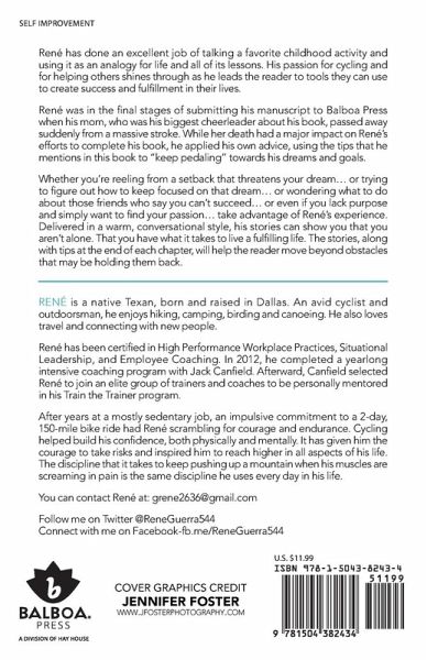 René has done an excellent job of taking a favorite childhood activity and using it as an analogy for life and all of its lessons. His passion for cycling and for helping others shines through as he leads the reader to tools they can use to create success and fulfillment in their lives. René was in the final stages of submitting his manuscript to Balboa Press when his mom, who was his biggest cheerleader about his book, passed away suddenly from a massive stroke. While her death had a major impact on René’s efforts to complete his book, he applied his own advice, using the tips that he mentions in this book to "keep pedaling" towards his dreams and goals. Whether you’re reeling from a setback that threatens your dream… or trying to figure out how to keep focused on that dream… or wondering what to do about those friends who say you can’t succeed… or even if you lack purpose and simply want to find your passion… take advantage of René’s experience. Delivered in a warm, conversational style, his stories can show you that you aren’t alone. That you have what it takes to live a fulfilling life. The stories, along with tips at the end of each chapter, will help the reader move beyond obstacles that may be holding them back.