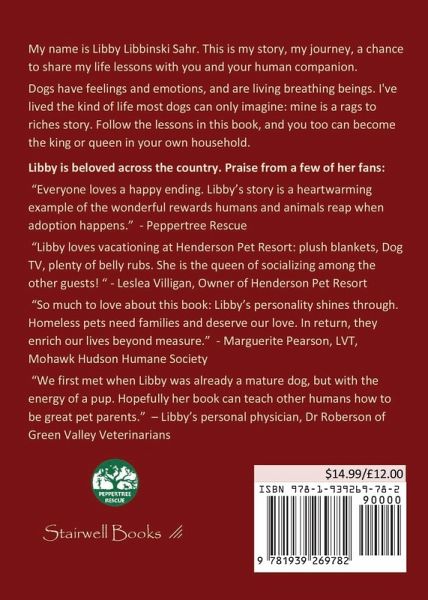 Life Lessons by Libby is a humorous book for animal lovers, written from the perspective of Libby, a dog transformed from a stray on the streets of New York City, to a beloved family member. Presented as a guidance book for dogs and their people, the (canine) reader learns how to choose a family, and train them to best meet their wants, needs, and desires. After youthful misadventure, Libby, still a pup, finds herself alone in the back of a dog catcher's van, but she soon finds Bunny and Bud. Topics include: dining options, sleeping arrangements, personal hygiene, exercising, boarding away from home, moving across country, and growing old. Entertaining and informative for humans, dogs, and those who want to share their lives with a canine companion.
