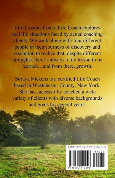 What can you do when being a lifelong caregiver has left nothing for yourself? How do you persevere when you're young and gifted, but tragedy threatens to steal your motivation? Where is the silver lining when the one you love may leave you homeless? What happens when your job is stable, pays well, and has benefits, but it's slowly tearing you apart? Certified Life Coach, motivational speaker, and television commentator Soraya Nickens has seen it all, and now through these true tales of four triumphant clients, everyday people of various ages and diverse walks of life, she provides you with lessons you can apply to your own unique context. In Life Lessons From a Life Coach, you'll not only get to know Kai, Penny, Alene, and Hal (and Soraya!), but also get to know more about yourself as you come to journaling pages with question prompts after each story, that help you tap into your inner power, talents, and resilience.