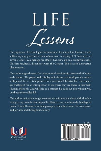 The explosion of technological advancement has created an illusion of self-sufficiency and greed with the modern man. A feeling of "I don't need of anyone" and "I can manage my affairs" has come up on a worldwide basis. This has resulted a disconnect with the Creator. This is a self-destructive phenomenon. The author urges the need for a deep-rooted relationship between the Creator and creation. The pages inside display an intimate relationship of the author with Jesus Christ. It is imperative for a successful Christian life. The readers are challenged for an introspection to see where they are today in their faith journey. Not only God will lead you through his path but also will join you on the journey called life. The author invites you to get reconnected without any delay with the One who gave up even the last drop of his blood to save you from the bondage of Satan. This will assure your safe passage to the other shore, his love, peace, and joy now and throughout eternity.