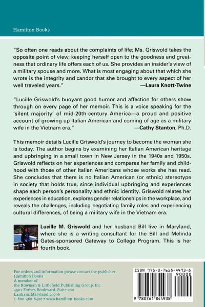 This memoir details Lucille Griswold's journey to become the woman she is today. The author begins by examining her Italian American heritage and relates her experiences in education, explores gender relationships in the workplace, and reveals the challenges of being a military wife in the Vietnam era.
