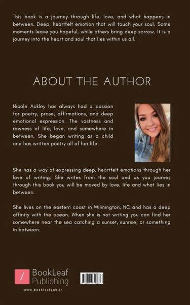 This book is a journey through life, love, and what happens in between. Deep, heartfelt emotion that will touch your soul. Some moments leave you hopeful, while others bring deep sorrow. It is a journey into the heart and soul that lies within us all.