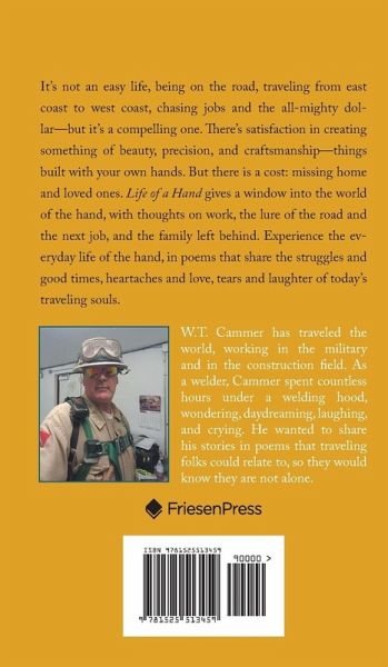 It's not an easy life, being on the road, traveling from east coast to west coast, chasing jobs and the all-mighty dollar-but it's a compelling one. There's satisfaction in creating something of beauty, precision, and craftsmanship-things built with your own hands. But there is a cost: missing home and loved ones. Life of a Hand gives a window into the world of the hand, with thoughts on work, the lure of the road and the next job, and the family left behind. Experience the everyday life of the hand, in poems that share the struggles and good times, heartaches and love, tears and laughter of today's traveling souls.