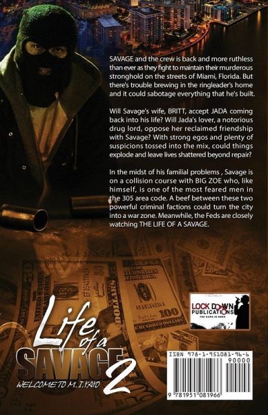SAVAGE and the crew is back and more ruthless than ever as they fight to maintain their murderous stronghold on the streets of Miami, Florida. But there's trouble brewing in the ringleader's home and it could sabotage everything that he's built. Will Savage's wife, BRITT, accept JADA coming back into his life? Will Jada's lover, a notorious drug lord, oppose her reclaimed friendship with Savage? With strong egos and plenty of suspicions tossed into the mix, could things explode and leave lives shattered beyond repair? In the midst of his familial problems , Savage is on a collision course with BIG ZOE who, like himself, is one of the most feared men in the 305 area code. A beef between these two powerful criminal factions could turn the city into a war zone. Meanwhile, the Feds are closely watching THE LIFE OF A SAVAGE.