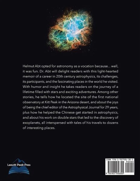Helmut Abt opted for astronomy as a vocation because... well, it was fun. Dr. Abt will delight readers with this light-hearted memoir of a career in 20th century astrophysics, its challenges, its participants, and the fascinating places in the world he visited. With humor and insight he takes readers on the journey of a lifetime filled with stars and exciting adventures. Among other stories, he tells how he located the site of the first national observatory at Kitt Peak in the Arizona desert, and about the joys of being the chief editor of the Astrophysical Journal for 29 years, plus how he helped the Chinese get started in astrophysics, and about his work on double stars that led to the discovery of exoplanets, all interspersed with tales of his travels to dozens of interesting places.
