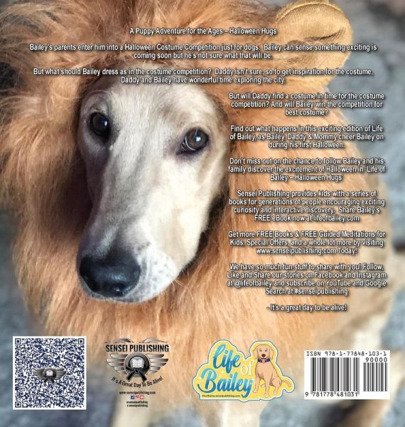 Bailey's parents enter him into a Halloween Costume Competition just for dogs. Bailey can sense something exciting is coming soon but he's not sure what that will be. But what should Bailey dress as in the costume competition? Daddy isn't sure, so to get inspiration for the costume, Daddy and Bailey have a wonderful time exploring the city. But will Daddy find a costume in time for the costume competition? And will Bailey win the competition for best costume? Find out what happens in this exciting edition of Life of Bailey, as Bailey, Daddy & Mommy cheer Bailey on during his first Halloween. Don't miss out on the chance to follow Bailey and his family and discover the excitement of Halloween in 'Life of Bailey - Halloween Hugs'