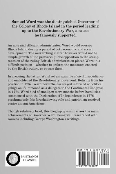 Samuel Ward was the distinguished Governor of the Colony of Rhode Island in the period leading up to the Revolutionary War, a cause he famously supported. An able and efficient administrator, Ward would oversee Rhode Island during a period of both economic and social development. The overarching matter however would not be simple growth of the province: public opposition to the stamp taxation of the ruling British administration placed Ward in a difficult position – whether to enforce the measures enacted by the British rulers, or oppose them. In choosing the latter, Ward set an example of civil disobedience and emboldened the Revolutionary movement. Retiring from his position in 1767, Ward nevertheless stayed informed of political goings on. Summoned as a delegate to the Continental Congress in 1774, Ward died of smallpox mere months before hostilities commenced with the Declaration of Independence in 1776 – posthumously, his foreshadowing role and patriotism received praise among Americans. Though relatively brief, this biography summarizes the main achievements of Governor Ward, being well-researched with sources including George Washington’s writings.