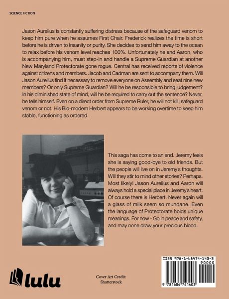 Jason Aurelius is constantly suffering distress because of the safeguard venom to keep him pure when he assumes First Chair. Frederick realizes the time is short before he is driven to insanity or purity. She decides to send him away to the ocean to relax before his venom level reaches 100%. Unfortunately he and Aaron, who is accompanying him, must step-in and handle a Supreme Guardian at another New Maryland Protectorate gone rogue. Central has received reports of violence against citizens and members. Jacob and Cadman are sent to accompany them. Will Jason Aurelius find it necessary to remove everyone on Assembly and seat nine new members? Or only Supreme Guardian? Will he be responsible to bring judgement? In his diminished state of mind, will he be required to carry out the sentence? Never, he tells himself. Even on a direct order from Supreme Ruler, he will not kill, safeguard venom or not. His Bio-modem Herbert appears to be working overtime to keep him stable, functioning as ordered.