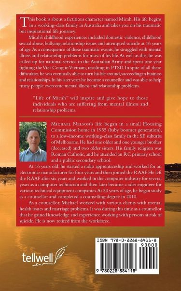 This book is about a fictitious character named Micah. His life begins in a working-class family in Australia and takes you on his traumatic but inspirational life journey. Micah's childhood experiences included domestic violence, childhood sexual abuse, bullying, relationship issues and attempted suicide at 16 years of age. As a consequence of these traumatic events, he struggled with mental illness and relationship problems for most of his life. As well as this, he was called up for national service in the Australian Army and spent one year fighting the Viet Cong in Vietnam, resulting in PTSD. In spite of all these difficulties, he was eventually able to turn his life around, succeeding in business and relationships. In his later years he became a counsellor and was able to help many people overcome mental illness and relationship problems. "Life of Micah" will inspire and give hope to those individuals who are suffering from mental illness and relationship problems.